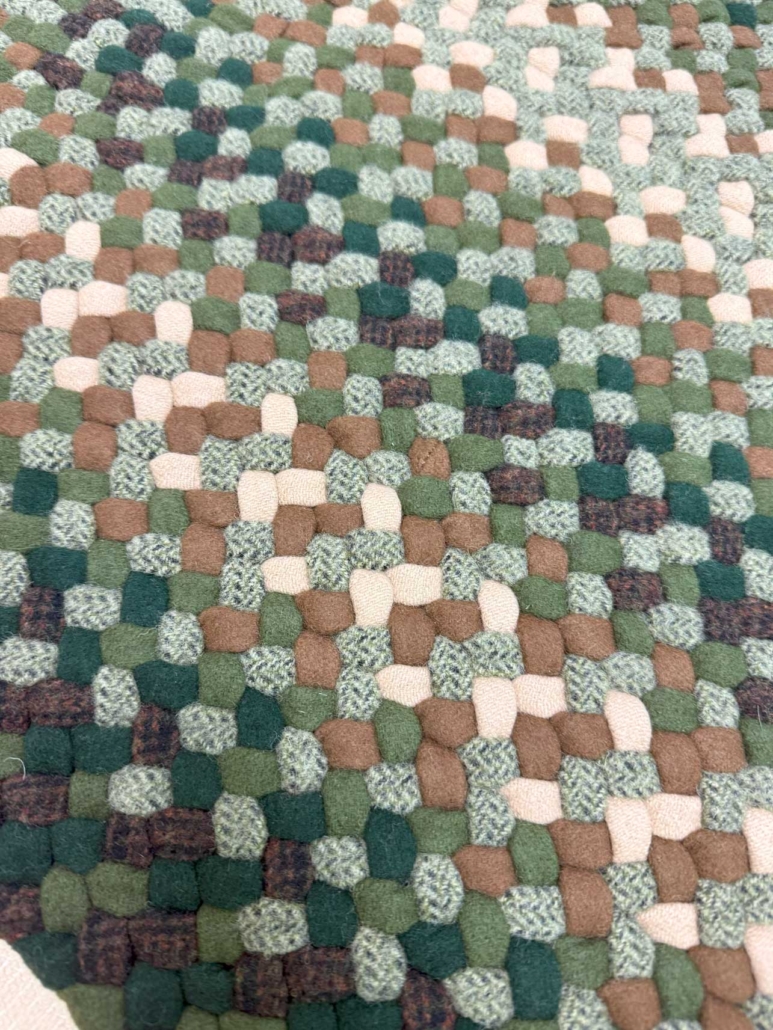 Bring a touch of natural charm to your space with this 2′ x 3′ wool braided rug, featuring a soothing blend of green, beige, and brown tones. Handcrafted for durability and warmth, this rug is perfect for entryways, kitchens, or cozy corners. The classic braided design adds timeless texture and a rustic feel to any room.